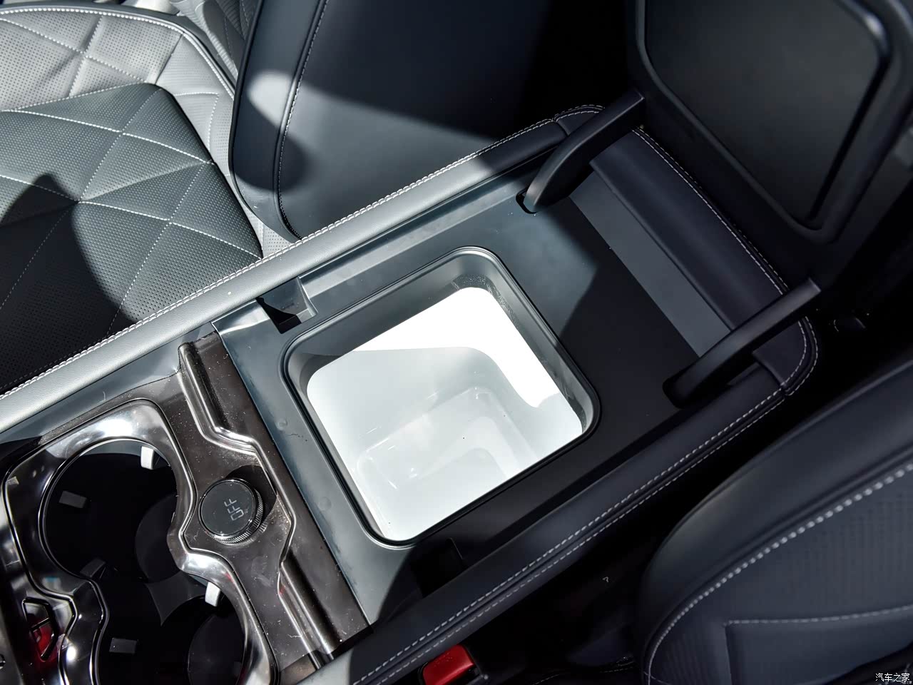 这个车的内饰说真的,特别招人喜欢,鄙人从小就有个硬派越野的梦,车里的设计元素也都挺硬汉的,实体按键也预留的比较多,最好评的,我觉得莫过于把模式和越野调节按钮放在方向盘上,用着简直不要太贴心了,还有HUD信息也比较充分,可以现实导航信息,最让我喜欢的,还是这个车载冰箱,可以制热和制冷,简直太爽。
