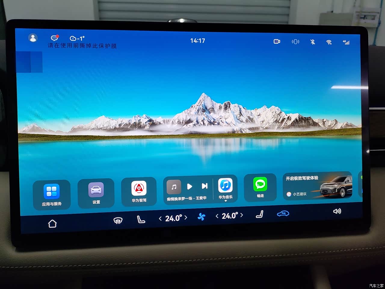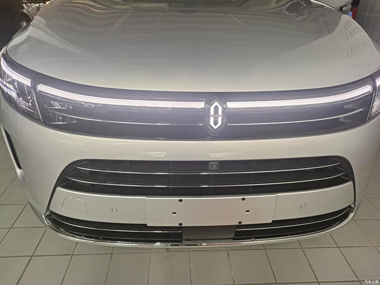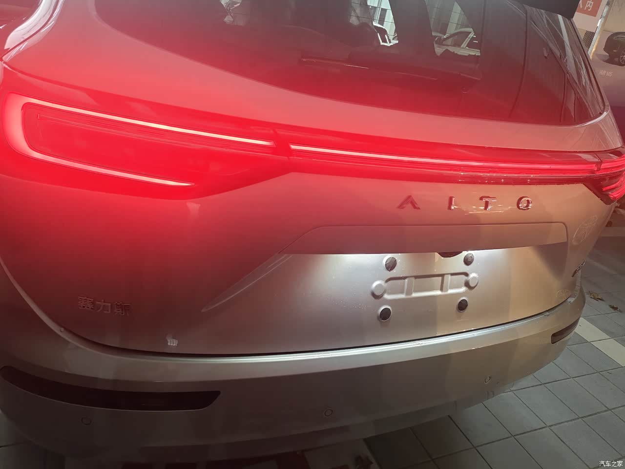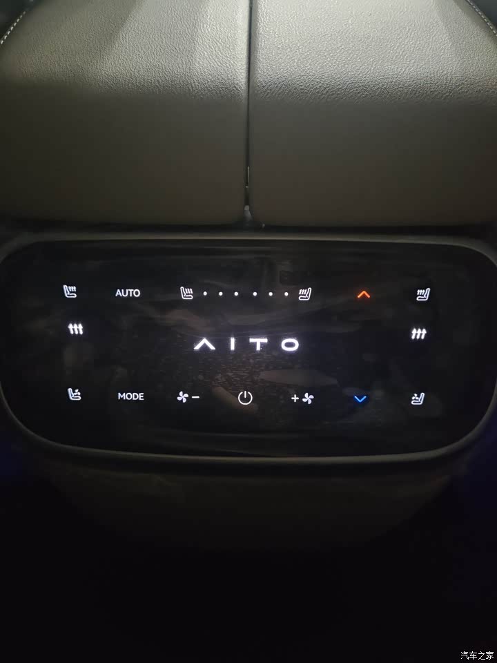 我喜欢它的车前那个灯,很有辨识度,大老远就能看到自己的车,也喜欢车内的氛围灯,可以根据自己的心情调节,还有打开主驾车门下面会有一个AITO的车标,刚好有新车在交车,拍了一下