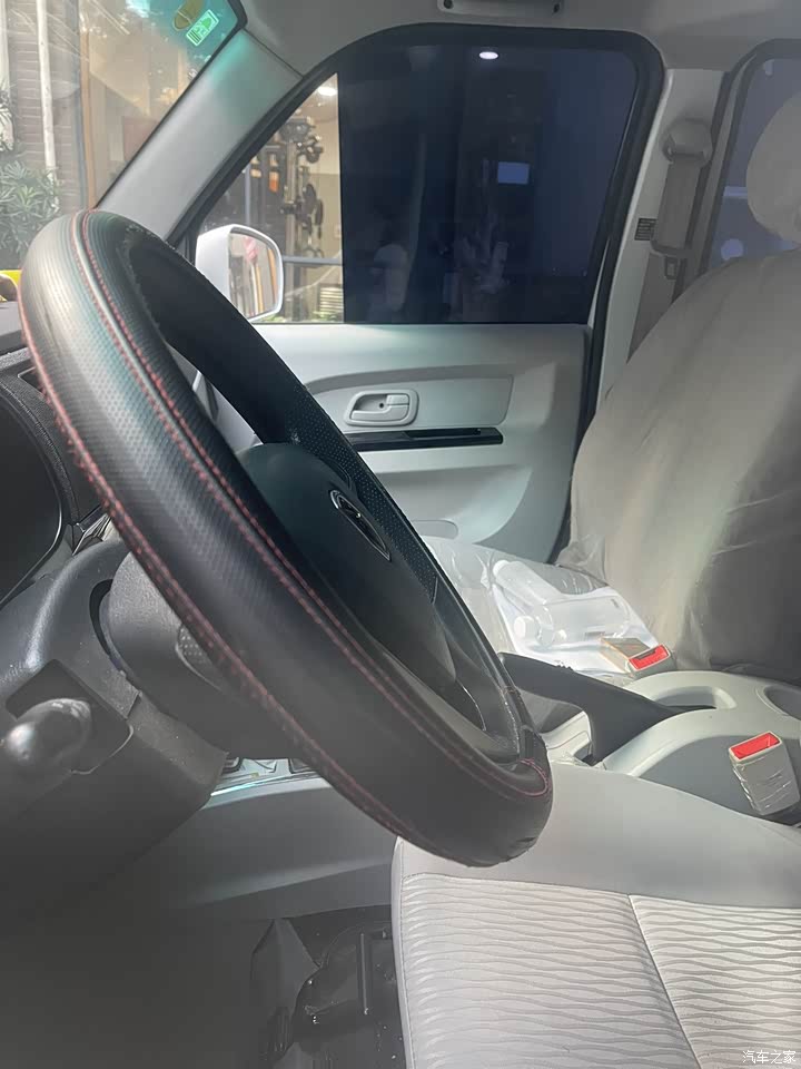 内饰马马虎虎,设计倒还行就是用料很简约,不过面包车用料都是这样子了,硬质塑料材质。座椅设计很不错。