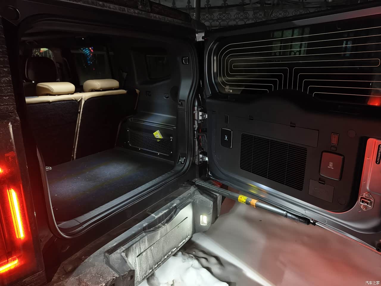 内饰方面就是一个字(大)还有后排是纯平的身材不是很胖的人坐四个也没问题,储物方面能放东西的地方也很多