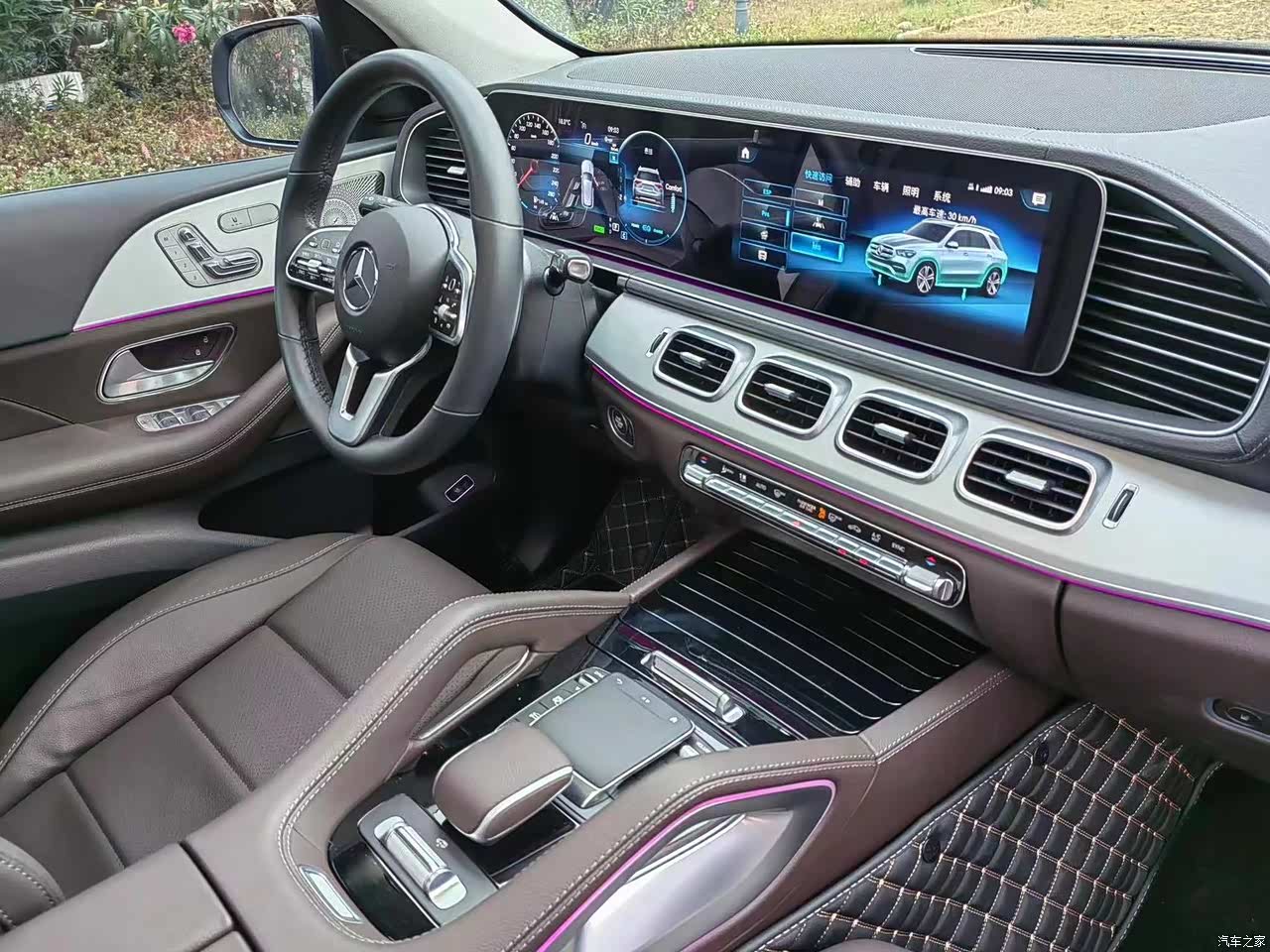 最满意的就是奔驰GLE的内饰,车内充满了豪华感和优异的品质感,座椅皮质缝线工艺精湛无可挑剔,,正副座椅都带有多向调节功能,使得身体可以很好的贴合在座椅上,长时间行驶也不会觉得疲惫,全液晶的仪表盘和中控大屏采用双联屏的造型,这个设计绝对让人眼前一亮视觉冲击效果爆棚,语音识别系统灵敏很流畅,电话 导航 空调切换流畅,科技感很强,金属按键质感十足,多功能方向盘手感丰富,按钮操作简便,用起来很顺手,氛围灯晚上效果很温馨,打造不同的氛围,中间的四出出风口非常亮眼实用性也很强,手机app远程功能很便捷,能控制车门、启动车辆、车辆定位等等功能,后排座椅还有可以放倒,大大提升的装载容量,出去自驾游时可以装载很多物品,扬声器喇叭有13个,音质悦耳动听,让我在路上行驶时心情愉悦没有烦恼,PM2.5的过滤装置使得车内一直充满清新的空气,没有异味,不管是家人还是客户都对奔驰的内饰赞不绝口,考究的用料,精美的设计,做工精致,全面体现奔驰的豪华车的品质和气质。