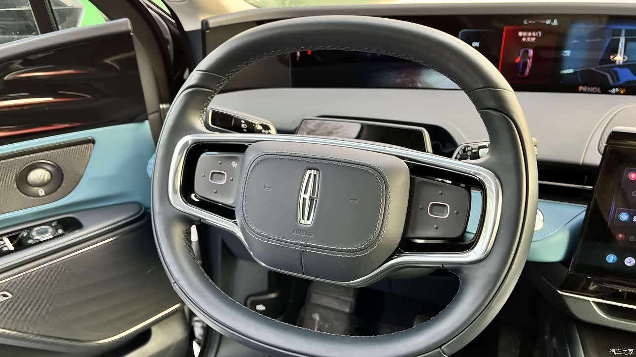 内饰是简约风格,我比较喜欢这种简单一点的设计风格。车内配置了两块触控液晶屏,一块是23.6英寸的大连屏,另外一块是11.1英寸的,屏幕够大看着也清楚。座椅使用材质软硬适中,前排可以加热通风功能,像现在这么冷的天气,有这个加热功能属实是很人性化的;不过差强人意的就是新车内饰有味道,这点还是需要改进下的哦。
