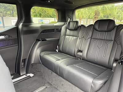 车身的尺寸在这摆着,中大型的一台MPV,加上它的造型也有点方盒子的感觉,所以车里面的空间还是可以的。坐着不拥挤,后备厢正常状态下放两个行李箱进去也没问题,基本的用车需求这台极氪009还是能够做到的。