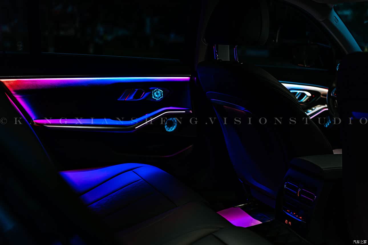 内饰都主要是采用了大量的软质材料覆盖,摸起来的触感舒适,同时也增加了整体的豪华感。中控台上的大尺寸液晶屏幕集成了宝马最新的iDrive操作系统,操作界面简洁易用,功能丰富。车内还配备了氛围灯 我自己也改了多色氛围灯。可以根据我自己的喜好和心情进行调节,增加了我驾驶的乐趣。在舒适性方面,空调是三温区的自动空调,驾驶席、副驾驶席以及后排可以分别调至各自舒适的温度。