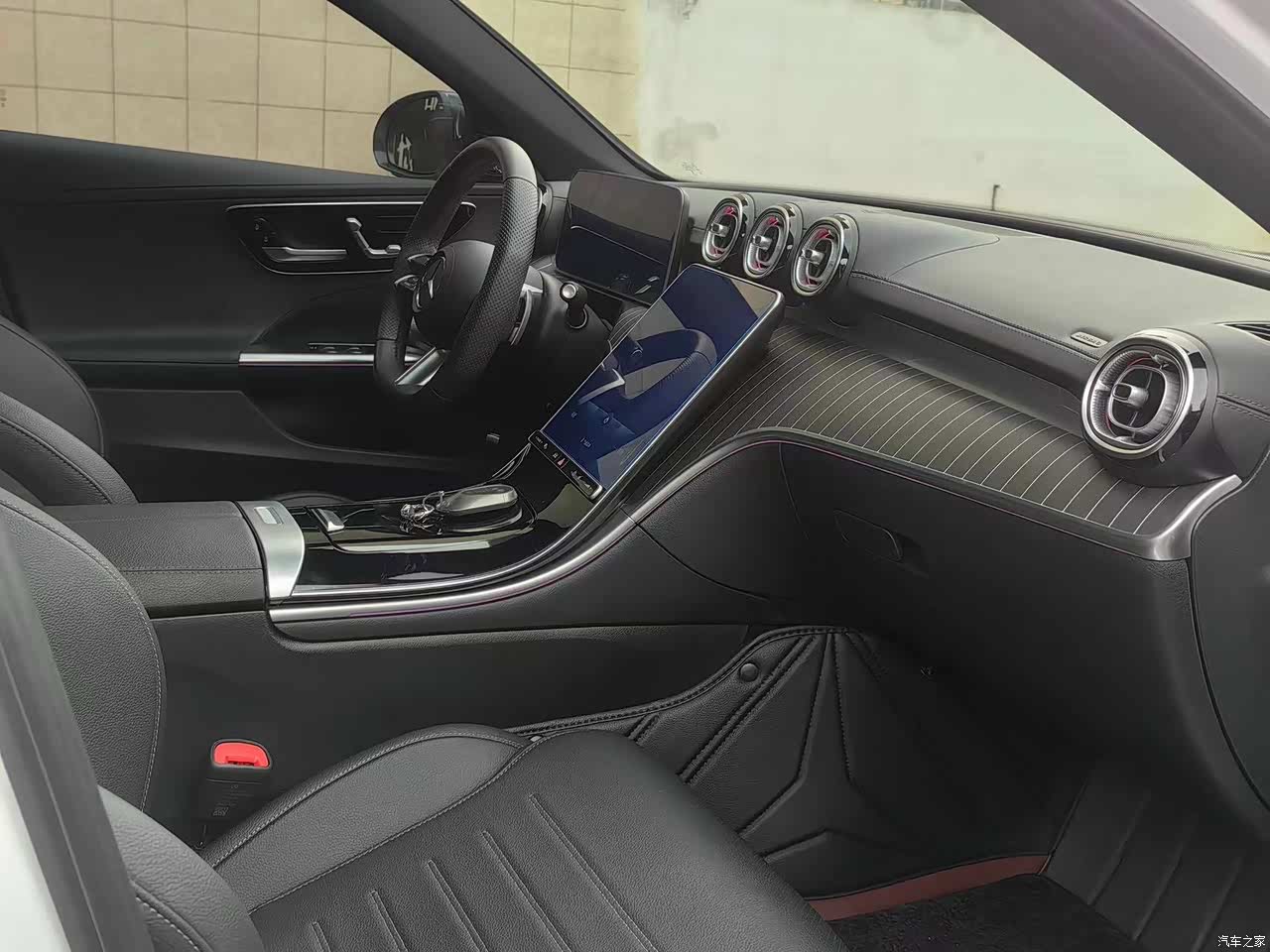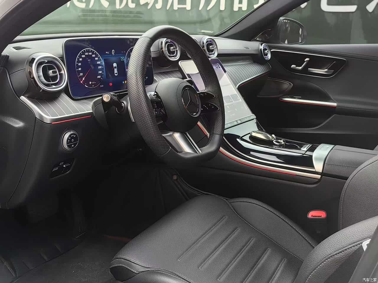 奔驰材质软包,手感柔软细腻,真皮方向盘握感丰富。