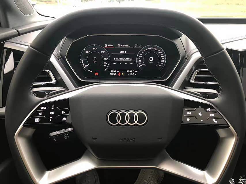 内饰除了异味比较重以外,其他的就是觉得中控屏幕略显小气了,绝大部分电车的内饰都是配置了大屏幕,娱乐操控性更好一些,但是奥迪配的中控屏太窄了点,有点不符合豪华车的品牌形象,后期改款希望能有所改变吧。 特别喜欢它方向盘的设计,很运动,质感很强。