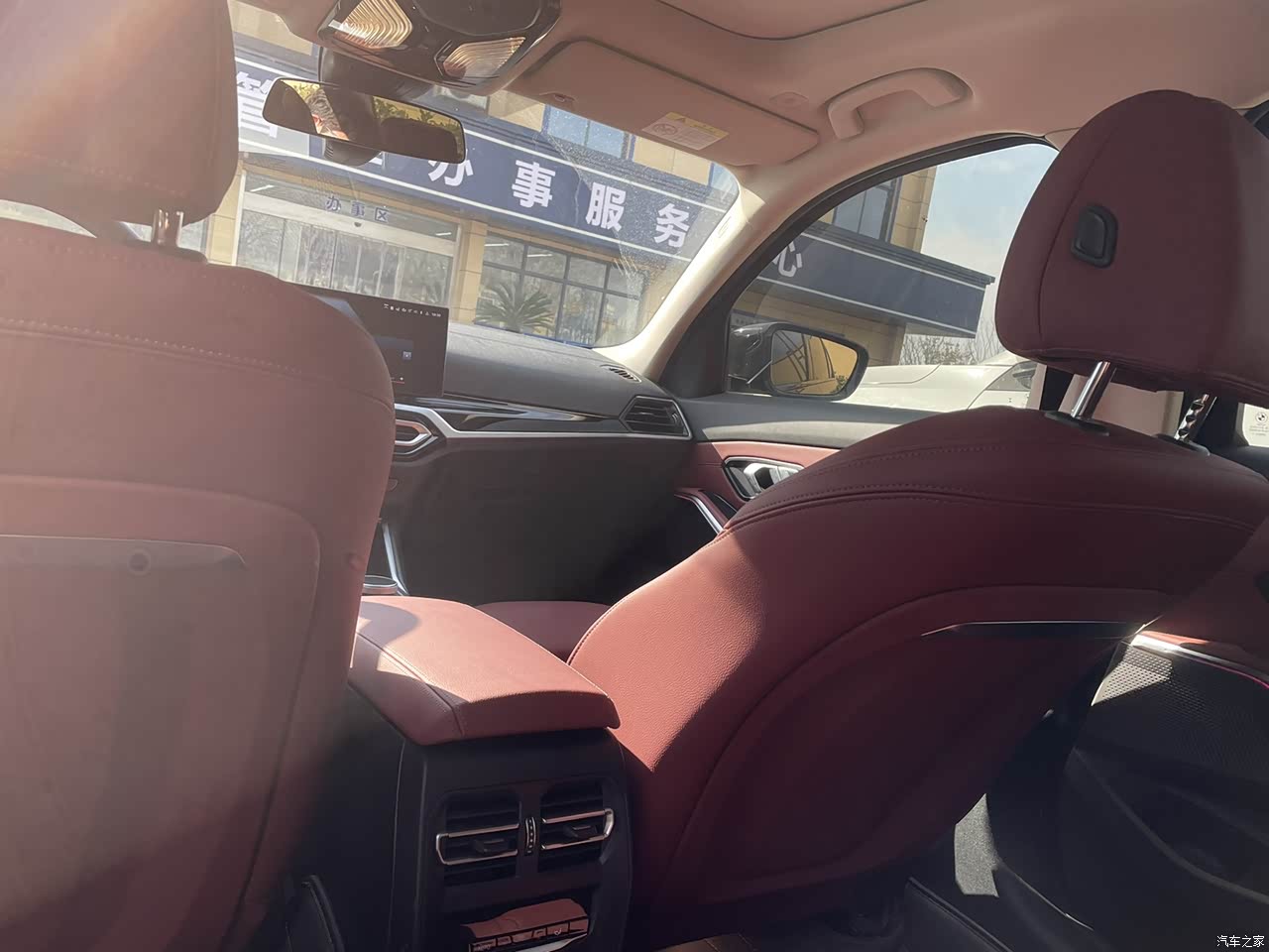 内饰我是火山红颜色的,坐进去比较有品质和氛围感,方向盘的手感很好做工对得起宝马的牌子,座椅虽然是混合皮但是坐上去舒适感比较强包裹性也蛮好,用料实在氛围灯也给力,晚上的时候灯光亮起氛围感一出心情也会好很多。