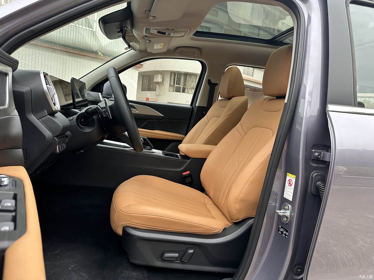 内饰我比较喜欢的事车座椅的质感,手感摸起来和坐起来的坐感都不错,包裹感比较强。颜色也喜欢,亮色系。但是中控台的设计感比较平庸,本身车身宽度还是比较大的,有1905mm了,屏幕还做那么小,就有点不协调。空调出风口机械风格还不错。