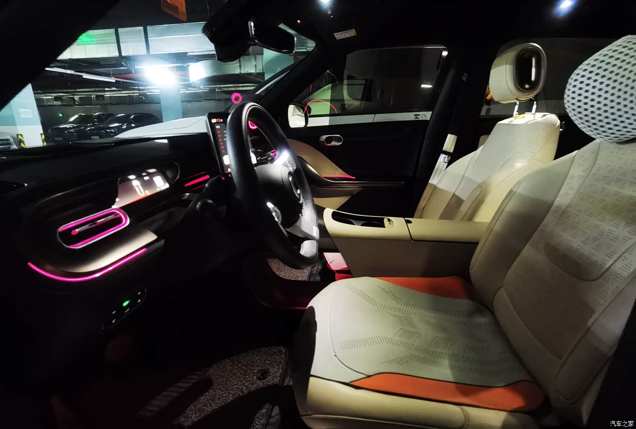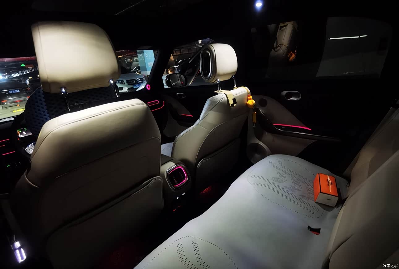 感觉这个价位应该能给到更大面积的软包内饰。虽然整体搭配还算和谐,但是塑料部分确实比较多,拉低了档次感。 座椅填充较厚且密实,支撑性很好,皮子用的也厚,不过体重轻的人有可能感觉稍硬。 虽然被迫选了深色车顶,但是一到晚上,车内漆黑一片配合随音乐不断变幻的氛围灯,莫名的散发出神秘且迷幻的气氛。再一不小心碰到屏幕上的香氛键(能设置快捷方式),这小气氛,屋顶会着火,花田会犯错~