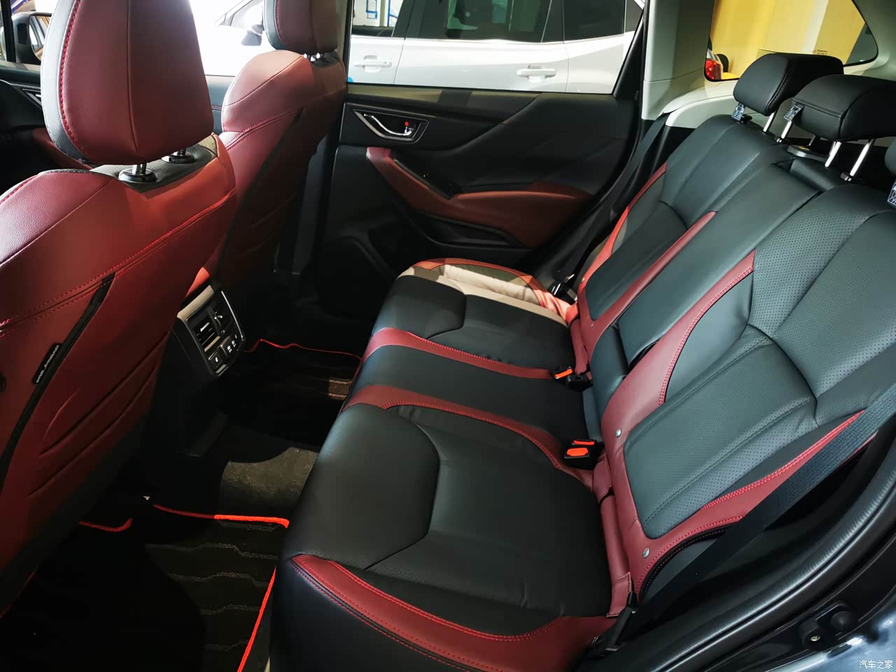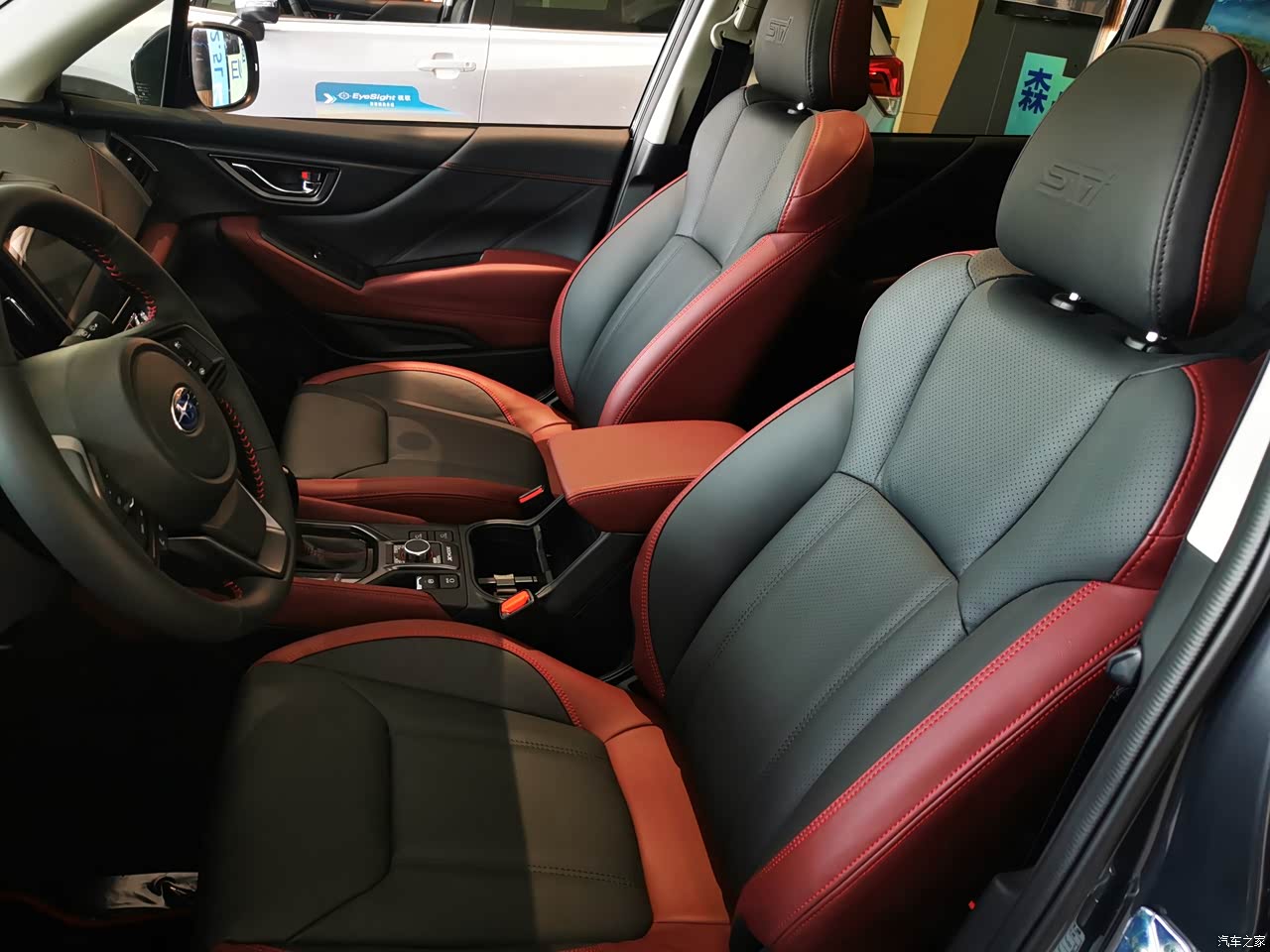 内饰采用的STI全球统一的波尔多红,质感搭配还是很有运动感,新车气味都很小,进口车的品控还是不错