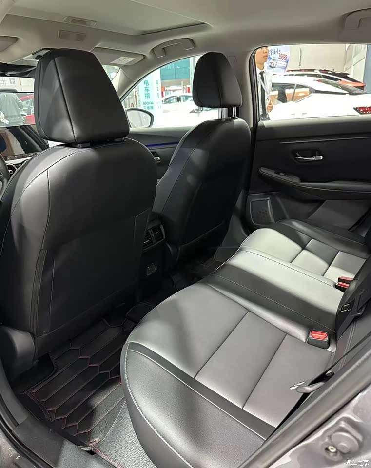 在空间方面,超混电驱轩逸的车身尺寸比传统车型更大,轴距更长,使得车内空间更加宽敞。无论是前排还是后排乘客都能享受到舒适的坐姿。后排腿部空间充足,即使长时间乘坐也不会感到压抑,178的个子坐在后排还留有一拳多的距离,在紧凑型轿车里能够脱颖而出。车内有多处实用的储物格和杯架,方便乘客存放随身物品。后备箱空间也足够大,可以容纳多个行李箱和其他物品