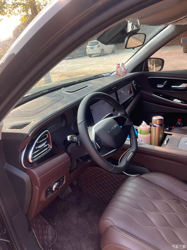 在内饰方面,星途揽月的中控台几乎被大屏幕占据,分别是12.3英寸液晶仪表盘、15.6英寸中控大屏和12.3英寸副驾驶娱乐屏,并且3块大屏嵌入在面板内,显得十分简洁。车辆内部有着大面积软料材质进行包覆,上面还加入细致缝线点缀,质感营造出众内饰全是皮质的,黑棕给人一种高端的感觉,内饰用料都很不错,当时看中的也是这个黑棕内饰