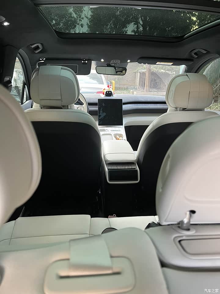 第二排空间更是夸张,你把一个两只狗狗的笼子放在后排过道上也是完全能放下的。带娃的宝宝把安全座椅安装上去之后前面还是能正常过人的,甚至是垂直方向,你站起来换衣服表示1.67米的个子也是能半站着的。带娃非常方便,也不会说是因为六座中间隔开一定距离。甚至有一个非常实用的小窍门,孩子小的时候需要抱着睡,宝妈的左胳膊会很酸,后排中间有一个扶手箱放下来正好承接宝宝的头重,对宝妈真的太友好了。