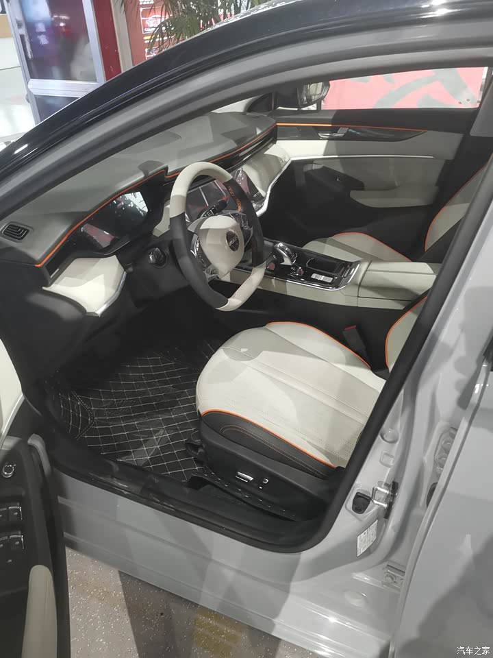 内饰颜色让我觉得看起来更加的简单时尚,更具有城市气息和家居的感觉。座椅大面积使用了软材料包装,外观和触感都挺不错的,整体坐起来感觉也很柔软,两侧的支撑做的也很不错,靠背还有一些打孔的处理,都能看出来设计的用心。整个中控台都是更偏向于驾驶员一侧,这样更有利于开车时候的操控,美中不足的是中控的屏幕做的有点小了,并且车机系统一般,操作起来不是很流畅