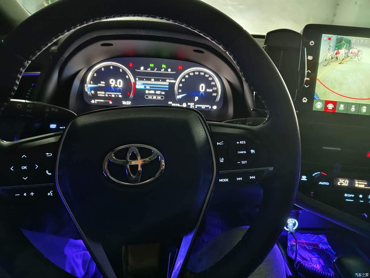 这车氛围灯还是显得比较高级有档次的,方向盘也比较有质感,整个内饰其实没大毛病,偏保守的风格,看起来也有质感,整体给打个7分吧,主要是现在国产新势力车的设计把大家胃口吊的太高了,但真挑毛病也没啥毛病。 车买来肯定会有味道,散了大概半个月吧,也就差不多了。 头顶天窗挺满意的,夏天关上遮阳帘就行,白天打开车里亮度高不少,没那么暗,也没那么压抑。 这车的悬架也是很中规中矩的那种,丰田嘛,三大件质量肯定是可以的,急转啥的也不觉得飘。 空调不管制冷还是制热目前看都挺不错,毕竟也是个新车,夏天制冷速度挺快,打开AC一会就凉快了。