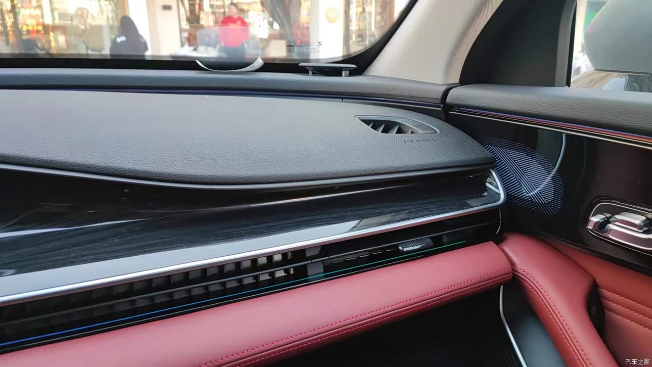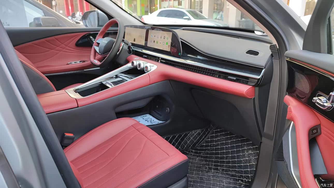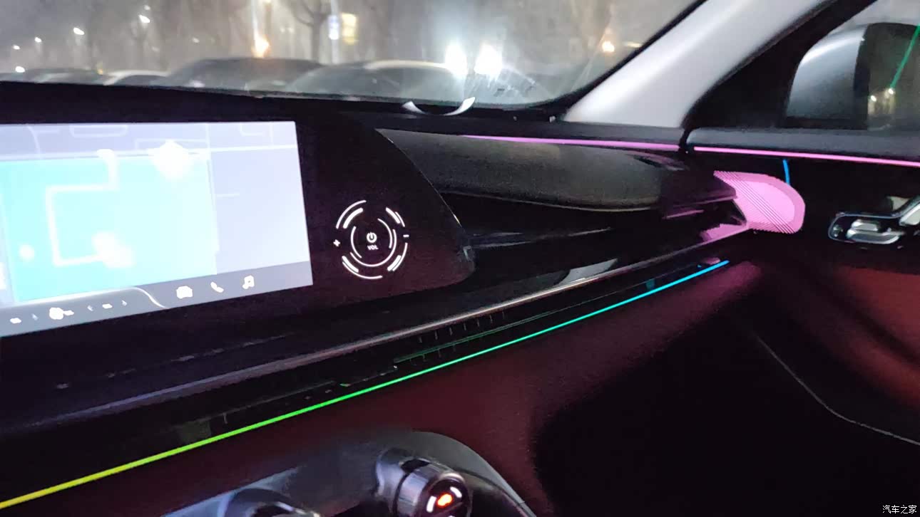 珊瑚红的内饰看起来也很时尚,双联屏的设计与中控台看起来很协调,我个人比较喜欢;氛围灯在晚上看起来真得非常漂亮,可以根据自己的爱好,选择不同的模式。内部没有任何气味