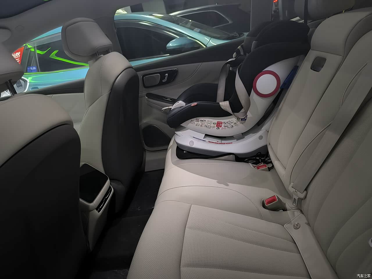 后排空间,已经安排上了小朋友的安全座椅