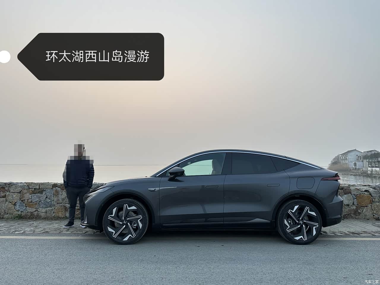 这些图是我元旦大冬天开去太湖西山岛环岛自驾游的图片。 第一张,一人一车,依在湖面石桥上,特别凸显车身线条和比例,帅的很! 第二张是45度前方模样,车头造型我也喜欢(屁股白天看一般般)