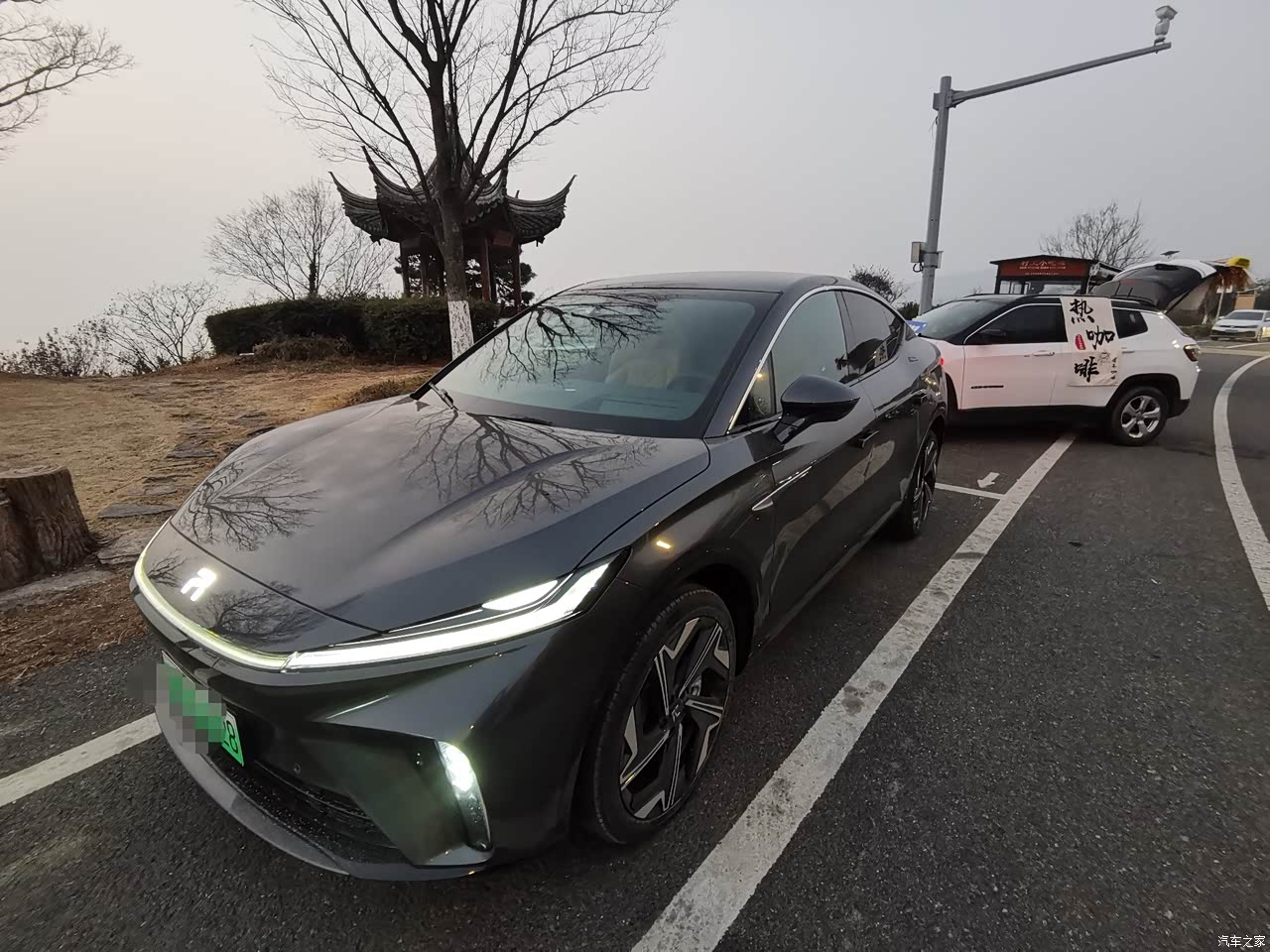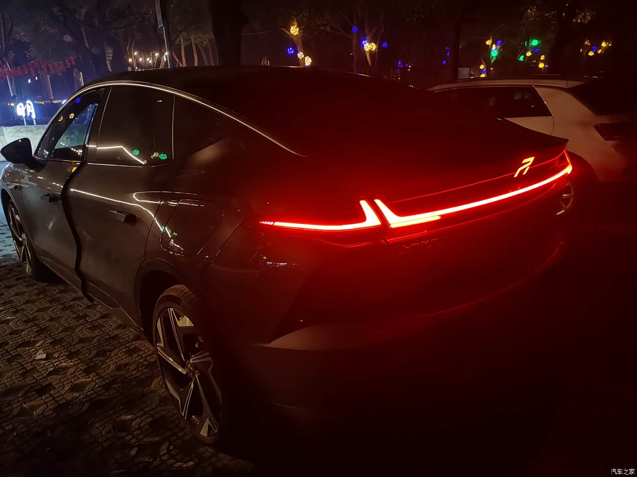晚上停在明月湾古村,有点雾,下车忽然看车灯射出两道光线,倍有神,这个角度看有点像驯龙高手里面的小黑龙。 尾灯不是跟风一根线贯穿那种看起来呆呆的,线条有设计感,这点我比较喜欢