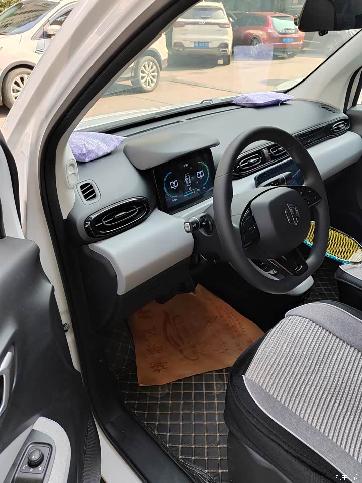 内饰颜色搭配还是很合理的,不会有太强的廉价感,只是低配用的织物座椅,久了可能会脏,这点可以买个座套解决。