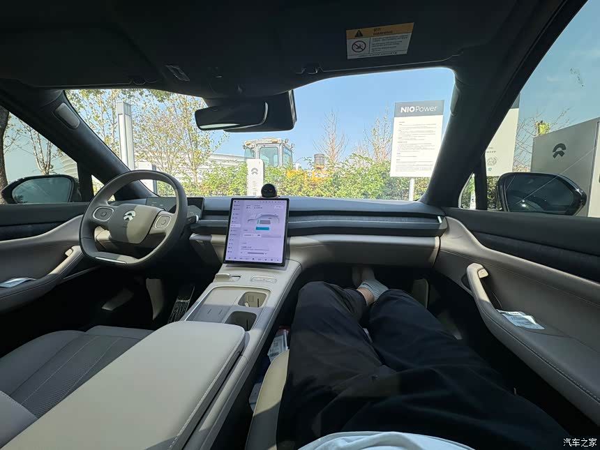 云贝米的内饰虽然要花四千八,但是目前我感觉是非常值得的,就是很亮很好看!这个颜色不是非常白的那种,但是也没有泛黄的颜色,配合大天窗玻璃看着很舒服。而且本来es8的氛围灯就没有et5et7那样很亮的感觉,更多是偏淡偏少一点的氛围,亮一点的内饰也能让晚上感觉没有那么暗。Nappa真皮座椅不说了这个真的基本是全nappa皮,ab柱到顶部都是麂皮的手感,es8至少在用料上没得说的。