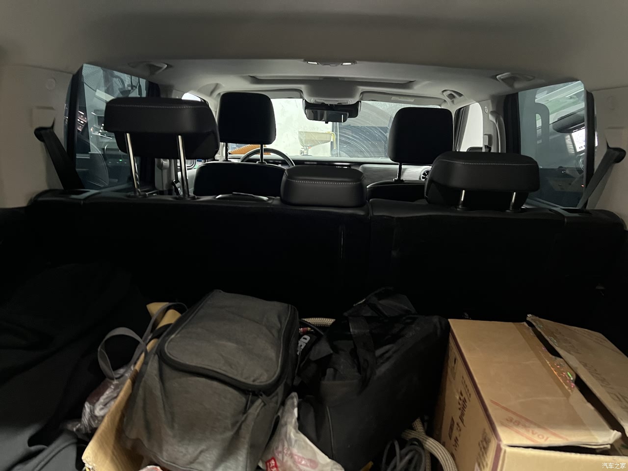 空间很大,前排后排都可以,和家人朋友一起出去玩了好几次了,想拉的东西也都能拉下。 后备箱空间也够大,是后开门的,东西比较方便拿取。带点行李什么的也不费劲。