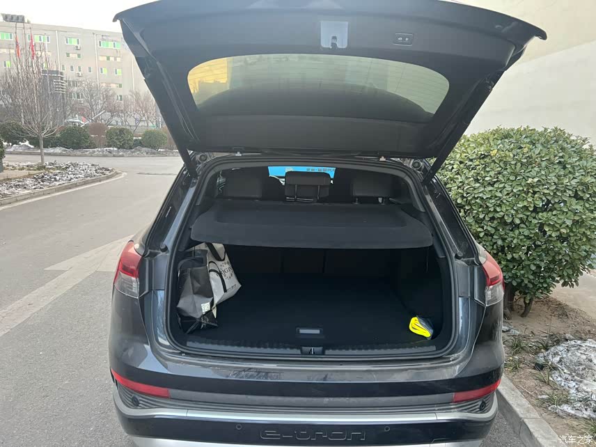 前后排对比奥迪Q3后,我感觉各方面都比奥迪Q3大。 再对比之前家里的吉利帝豪EV300也大,坐着前后排腿都伸的开。 后备箱空间也很大能放很多东西,比轿车后备箱空间高,放倒后排座椅空间就更大了。