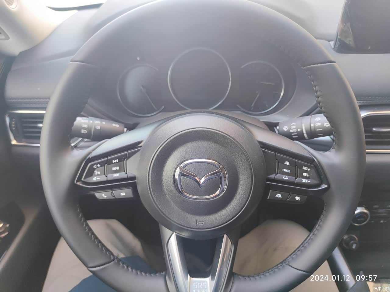 方向盘手感真的不错,感觉也很轻盈,上面的按钮也很好操作。实体按钮真的好过那些触屏的,这一点马自达做的的确很优秀!