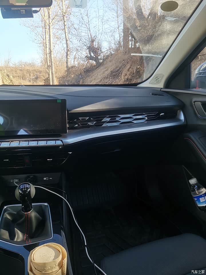 内后视镜上设置有取电口很不错,方便行车记录仪的安装,再也不用长距离跑线了。点烟器接口左右一个车机互联口一个链接U盘,还可以放手机。两个水杯架。储物空间足够使用。