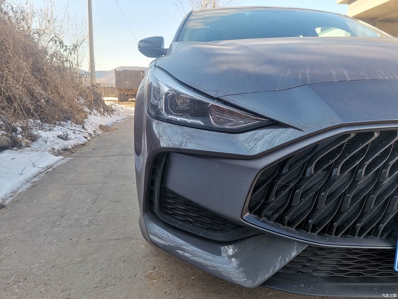 大大的中网,很有压迫感。这个车灯特别犀利。