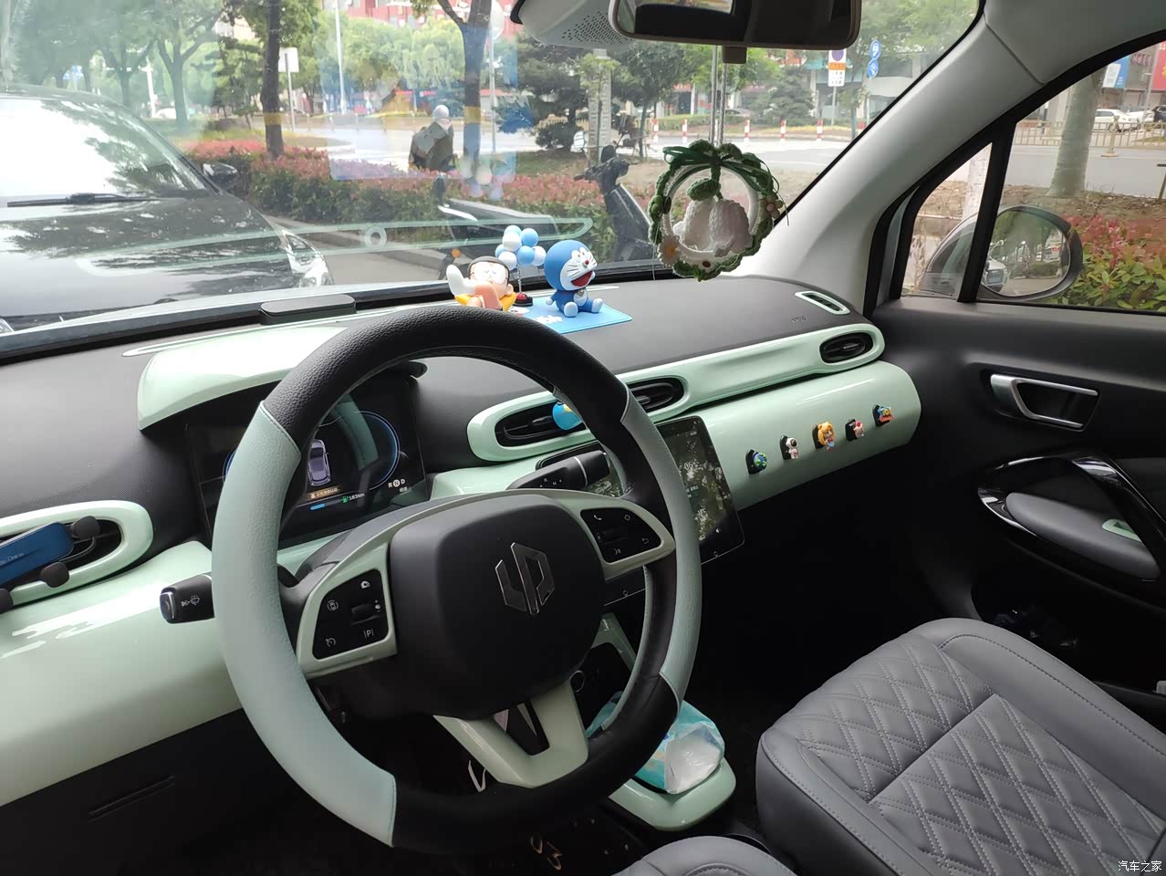 空间的话,毕竟是A00级别车,但是前排空间是足够的,特别适合两个人的出行。后排座椅可以放倒,储物空间显的更大,日常出行足够使用。