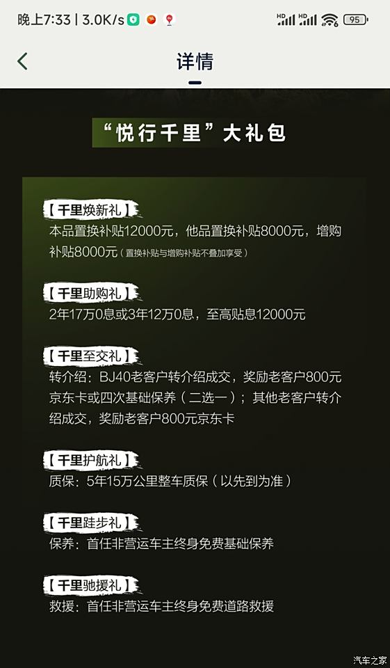 从价格来比,现在市场看来性价比最高的,有置换补贴与军警补贴给五星。上牌时发现是样车,不知道4S店知道这是样车吗?从性能上来看,暂时还可以,在我认知预期内,主要看今年五月西藏阿里新疆中表现。相信北京汽车。还有一点北京汽车的终身免费小保养和救援是我最看重的,销售说流量也是终身免费,实看到有10年了。为北京汽车大气点赞。 从使用费用来比,定位穿越考察,行程长人数少。所以一定要省油耗,基础保养终身免费,维护成本低。与房车比有明显的优势。例一房车油耗每公里1.5成本,每天至少200公里行程,1.5-0.6=0.9,多180元,在外地可以住很干净的快捷酒店了。