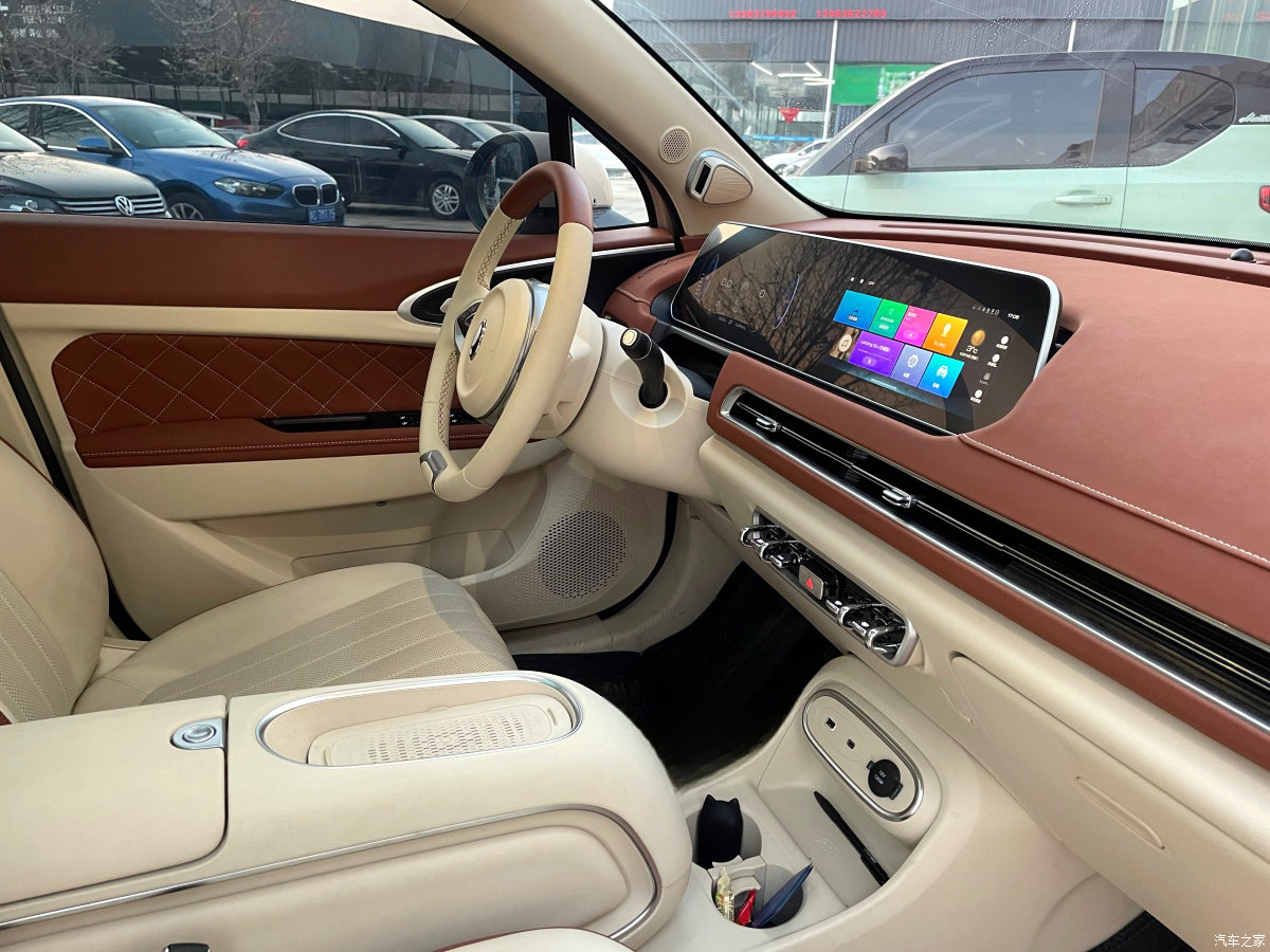 他的配置很值得一说,虽然说是一台电动汽车,可现在新能源汽车上的配置在这台车上面基本上都可以看到,比如手机APP远程功能,语音识别控制系统,360度全景影像,这么小的一台车有着如此高的配置真的应有尽有,安全备至。