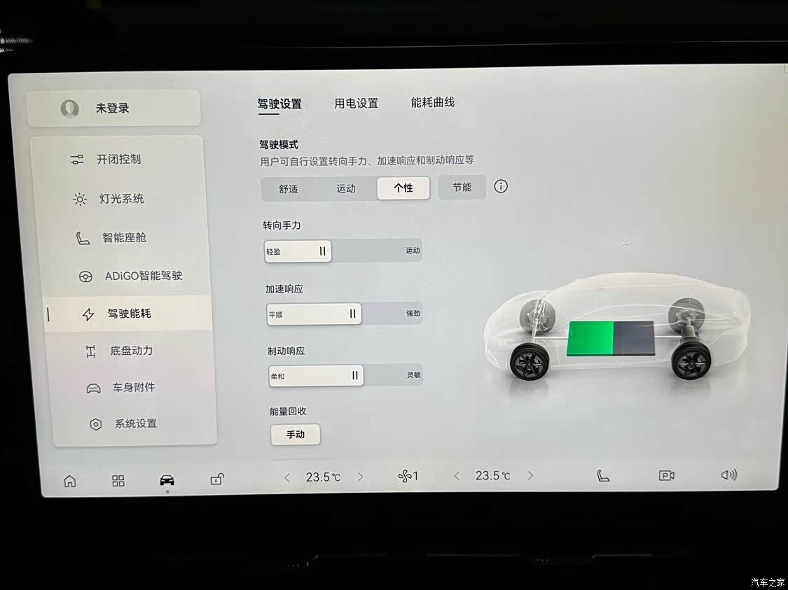 加速:个人感觉昊铂HT的加速没有问题,尤其是运动模式,动力非常好,电车本身属性就是动力好,秒杀大部分油车。 高速动力:高速不如低速加速给力,但也够用。值得一提的是高速很稳,车重又是SUV,可以切换运动模式。 踏板制动:我觉得舒适模式软硬适中,如果有自己的需求,还可以在个性化里面自己设置,如图。