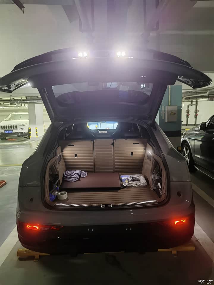 Q5L Sportback和Q5L版本对比空间没差多少,还是很够用的。前排位置宽松舒适,左右两边都非常的富裕,视野也非常OK.后排乘坐两个的情况下都是非常富裕的,但中间地台有传动轴隆起,不能坐太高大的人,整体还是很够用,前后两排的人脚随便都能伸直一点没有拥挤感。后备箱开口也非常大,后备箱空间也做的非常平整,左右两侧还做了掏空、原厂自带了网兜,后备箱的实用性没有因为溜背造型而牺牲很多。如果需要拉大件物品,还可以把后排座椅放下来跟后备箱齐平,这样面积超大,也可以当一张床,户外露营、午休睡觉使用。