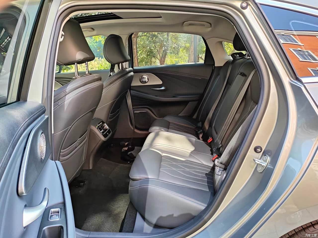 内饰的做工很精致,尤其是木纹的装饰。还有门板上的座椅调节按钮都很有高级感。中控台的整体感也很强,平时我放东西都可以藏到盖板下面。座椅的颜色搭配和座椅的缝线我也非常喜欢。