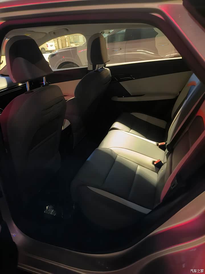 车内空间比从车外看起来要大很多,175前排调到合适位置后,头顶有一拳两指,来到后排腿部还有两拳多距离,对于大多数人来说乘坐空间应该是够用的。 加上车宽比较宽,后排中间地台只有微微凸起,后排也不显得拥挤,前排中控部分做了镂空处理,可以用来放包之类的,很方便。