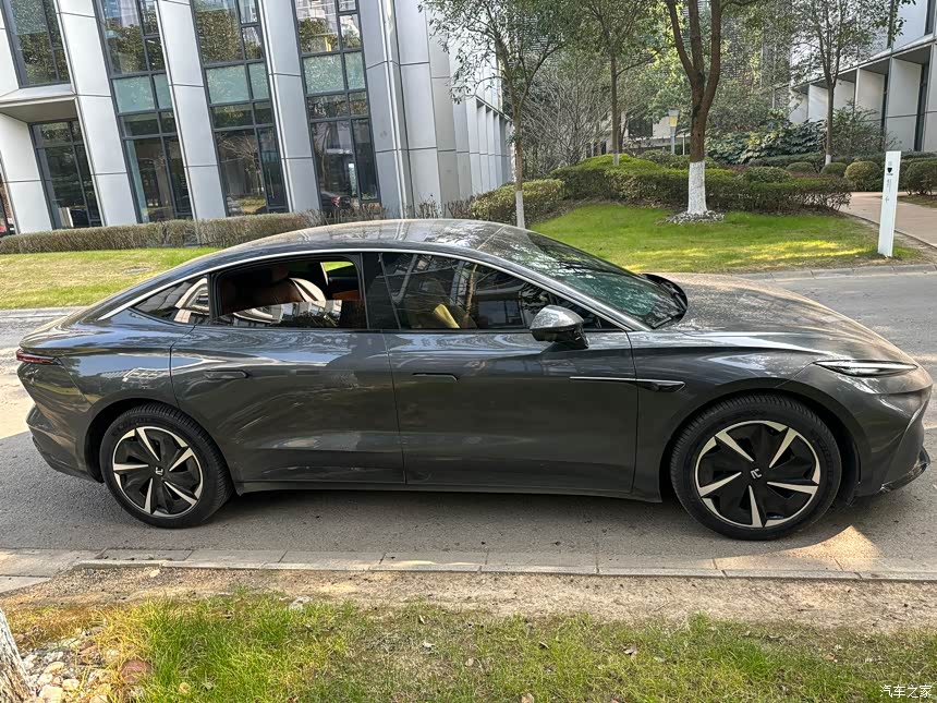 暮云棕色系看起来很高级,和同事开的保时捷卡宴极其相似。另外F7实在是太安静了, 在车内几乎听不到外面人的说话,除了胎噪,F7基本上没有其他的噪音,这个和油车相比实在是太香了。