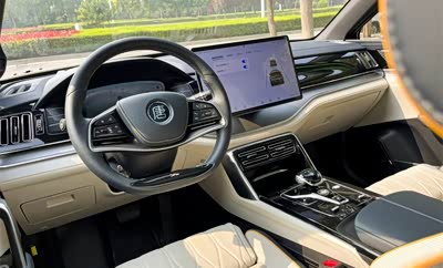 内饰的设计也很好看,整体的设计风格是我喜欢的风格。而且用料和做工都非常优秀,中控台采用了大量的软性材质包裹,摸起来手感很好。车内还配备了一块15.6英寸的大屏、全液晶仪表盘以及12.3英寸的副驾驶娱乐屏幕等等配置都挺高的。车上的智能化配置挺丰富的,有360度全景影像和透明底盘功能。还有卫星导航系统、车载电话等功能都比较实用方便使用起来也很方便省心省力。车机方面它搭载了一块大屏可以旋转横竖进行操作还是挺智能科技感满满的。