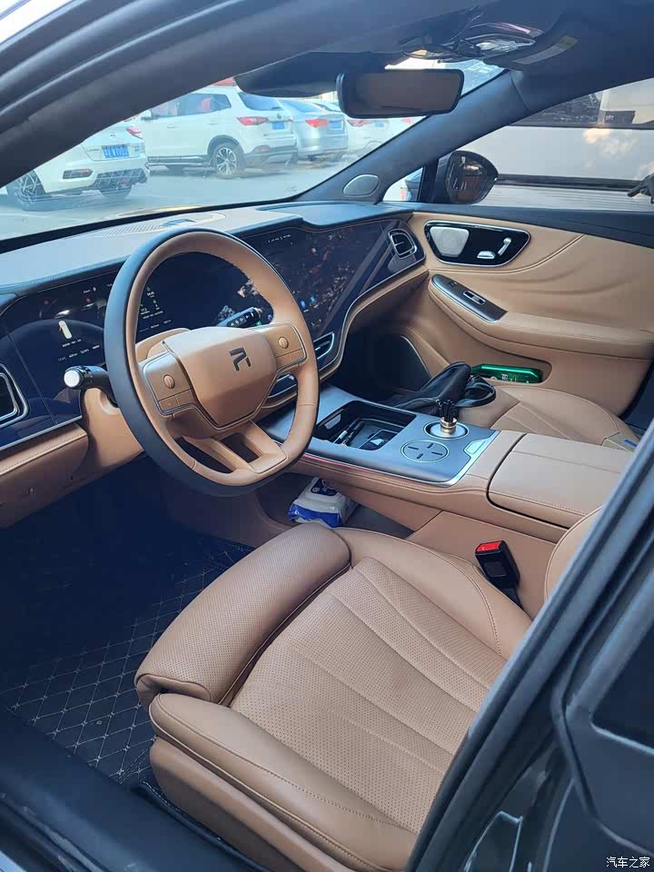 灰外内棕F7报道。选车没有太多的纠结,本是看新款R7,家里有款IDX,体验中心一眼相中F7,从试驾订车款2天时间。办手续贷款到提车正好2周,12月14日订,12月28日上好牌照。踩着上海新能源车23年牌照政策的点,落地。从订车到提车,工作人员服务还是在线。颜值在线,内饰豪华,43寸三联屏清晰好用,主驾头枕专属声响模式实用,无极驾驶模式赞。大爱的掀背后备箱。整体符合预期用车需求。家门口就是服务中心,日常用车,养护方便。