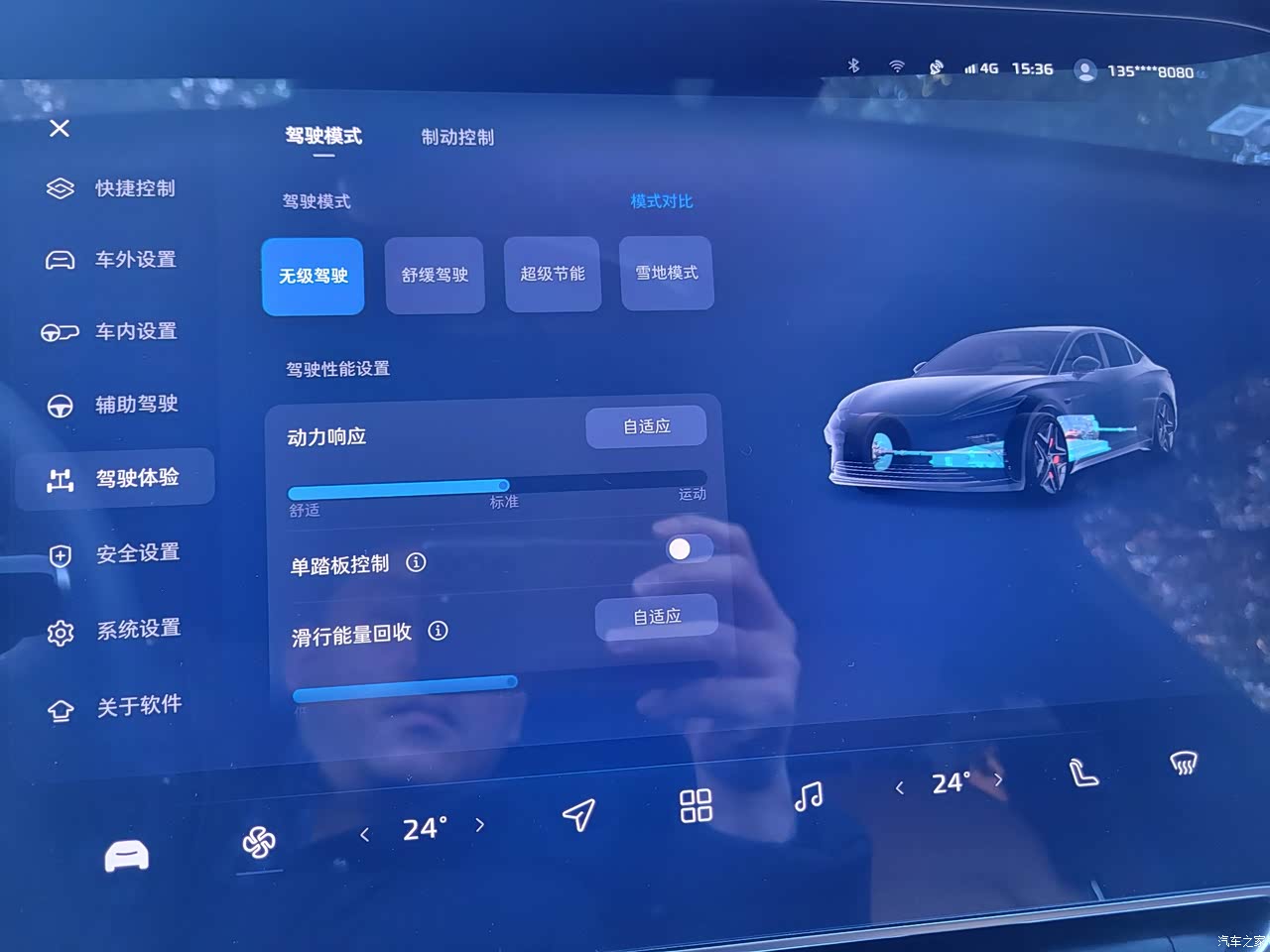 无极驾驶,整体调校符合大厂水平。起跑够给力,加速平稳,线性很好,没有卡顿。方向盘,刹车这些都可以根据自己驾驶习惯调节。整日要好过之前开其他品牌新能源车