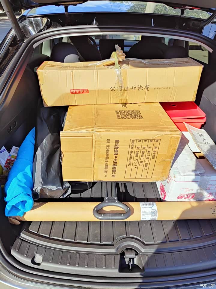 空间中规中矩还是比较够用的,露营装备,后备箱加前备箱正好一车,要是在大点就好了。