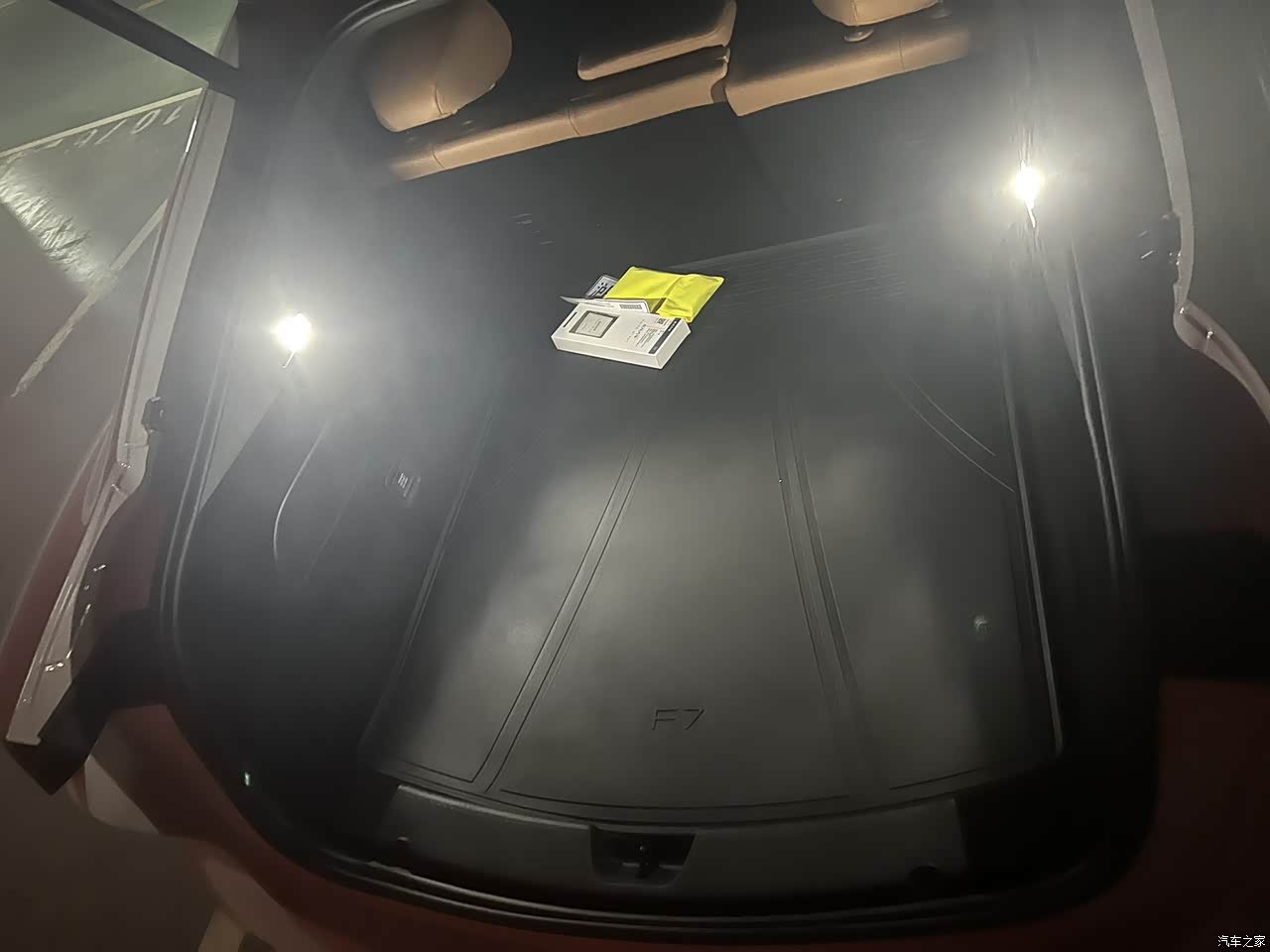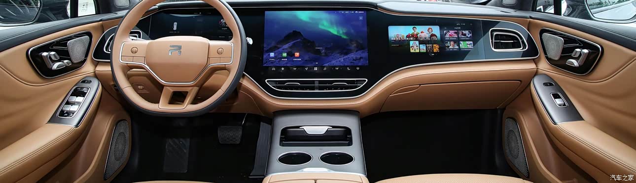 内饰颜色我选的是棕色,除了颜色比较大气外,还有一个原因就是家里有小孩会乘坐,棕色相对比较耐脏,四门配有大奔同款的座椅调节开关,挂挡采用是怀挡设计,虽然一开始有点不适应,但怀挡的设计确实可以节省出中央扶手区的空间,整车还配备的所谓“巴赫座舱”,坐上去有种沙发的感觉,前后座椅都配有加热和通风功能,主驾还带有按摩功能,对于上班族来说:上一天班,下班回去的路上开车的时候按摩一下简直不要太爽。车内氛围灯颜色可以自己调节喜欢的颜色,夜间驾驶的氛围感直接拉满。 说起内饰,电动车不得不提的就是车内大屏啦,F7前排采用的三联屏,简直就是“屏霸”,屏幕的操作逻辑跟手机类似,上手难度低,背景画面也可以随意切换,车机配备的8155芯片,车机系统非常流畅,操作大屏画面没有卡顿感。后排还配有一个8英寸的互动娱乐屏,可以独立调节空调及播放音乐视频,目前唯一不足的是后排屏只有熄屏软开关,但是触控下屏幕会点亮,带娃出行的话因为不想小孩在后排看屏幕,希望后续OTA可以增加后排屏关机选项。
