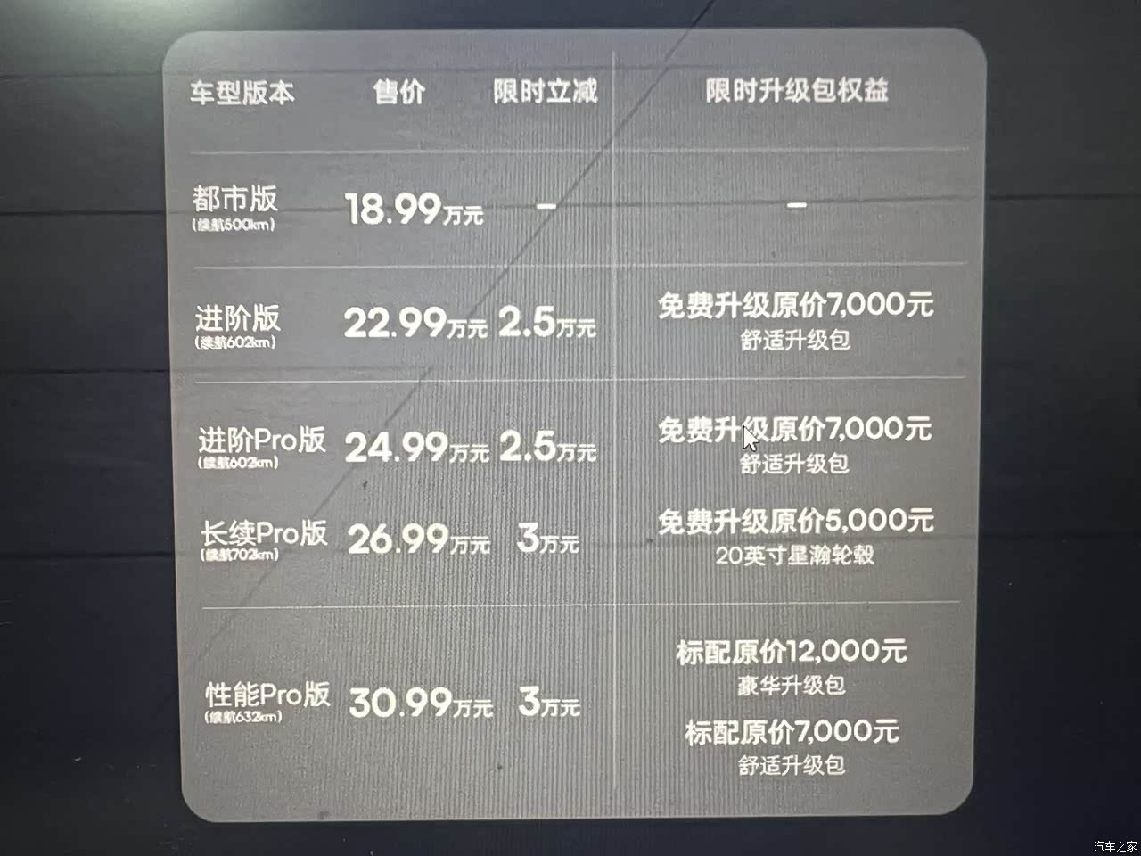 我选择的是进阶版,官方价格22.99W,限时立减2.5W,裸车价20.49W,厂家还给免费升级了巴赫座舱,由于太喜欢生椰拿铁这个颜色,特意加价了5000元,选了这个颜色。可以说这个价位在这个级别的车型里简直是碾压。