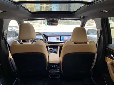 这车大和它的空间比例协调是有关的,我自己182的身高不论是第一排还是第二排都能坐进去感觉到舒适,空间宽裕充足,甚至说后备箱这都能放进去一个我。内部也做了很多大容量的储物格,最经典的应该就是中间贯通的储物格,位置刚好左右都可以用,上面还有可以放手机钥匙的地方,它也支持手机无线充电功能。