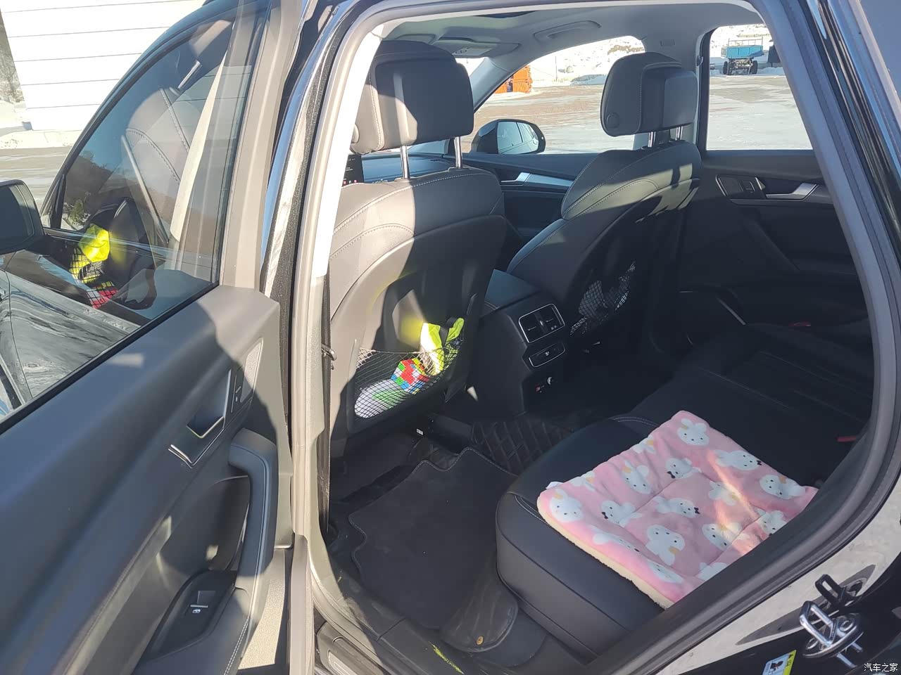 首先奥迪Q5l这款车前脸造型延续了家族造型,外观设计非常霸气并且很犀利,40豪华动感我选装了黑光包视觉上更加运动,湿式双离合变速箱提速那是绝对一点毛病没有,40的动力也完全可以满足你的驾驶需求,车内静音做的非常到位,19寸轮毂噪音也是刚刚好,关上车窗基本听不到什么胎噪声音。在要说的就是乘坐的空间了,比较上一代车空间提升了不是一点点,前排调整合适后排依然可以跷二郎腿,最最最满意的地方全系标配了四驱。油耗表显相当不错,综合油耗在9左右,这个是大部分市区偶尔高速路的表显结果。