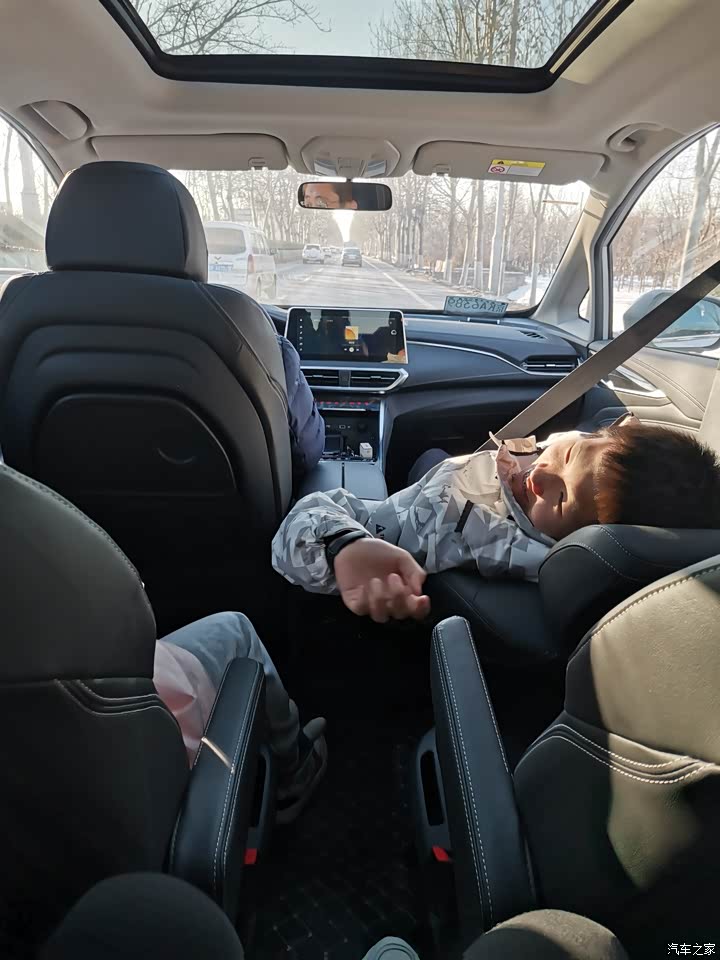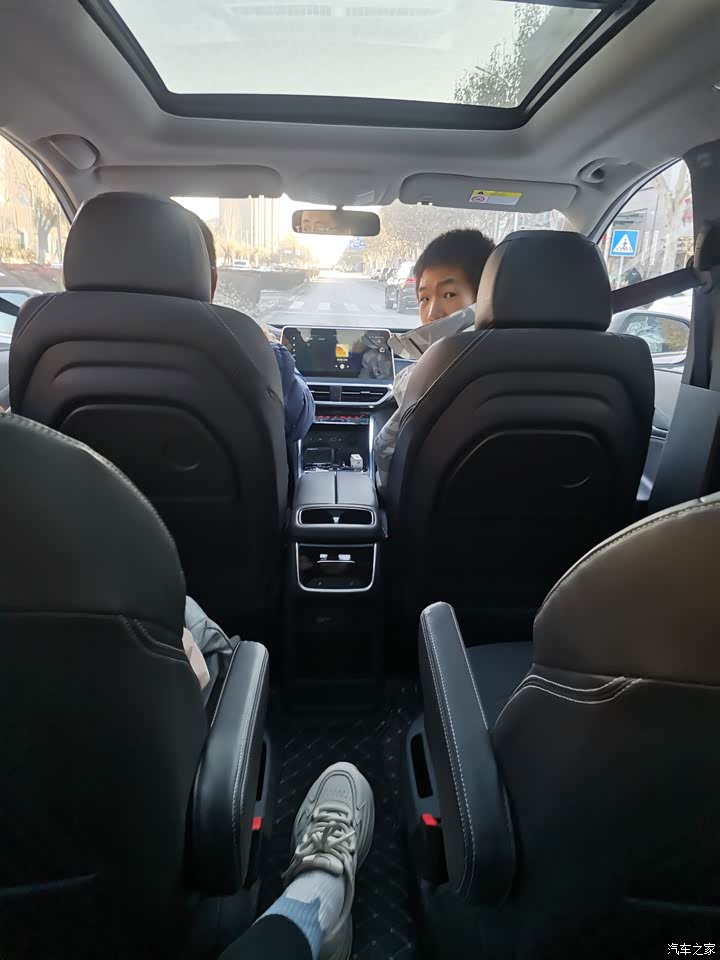 内部座椅材质挺舒服的,软软的,包裹性强,内部空间比较宽敞,坐着舒服。特别适合二胎家庭,大儿子特别喜欢😊。有多个储物格,放东西方便。二排座位后面带小桌板,也很方便。扶手箱是对开的,打开后盖子很矮,不占地方。二排和三排门板上都有杯架,孩子放个水瓶啥的都比较方便。因为是怀挡,所以主驾和副驾中间的位置,下面设计的是掏空状态,也可以放一些东西,这一点设计师想的也很周到。