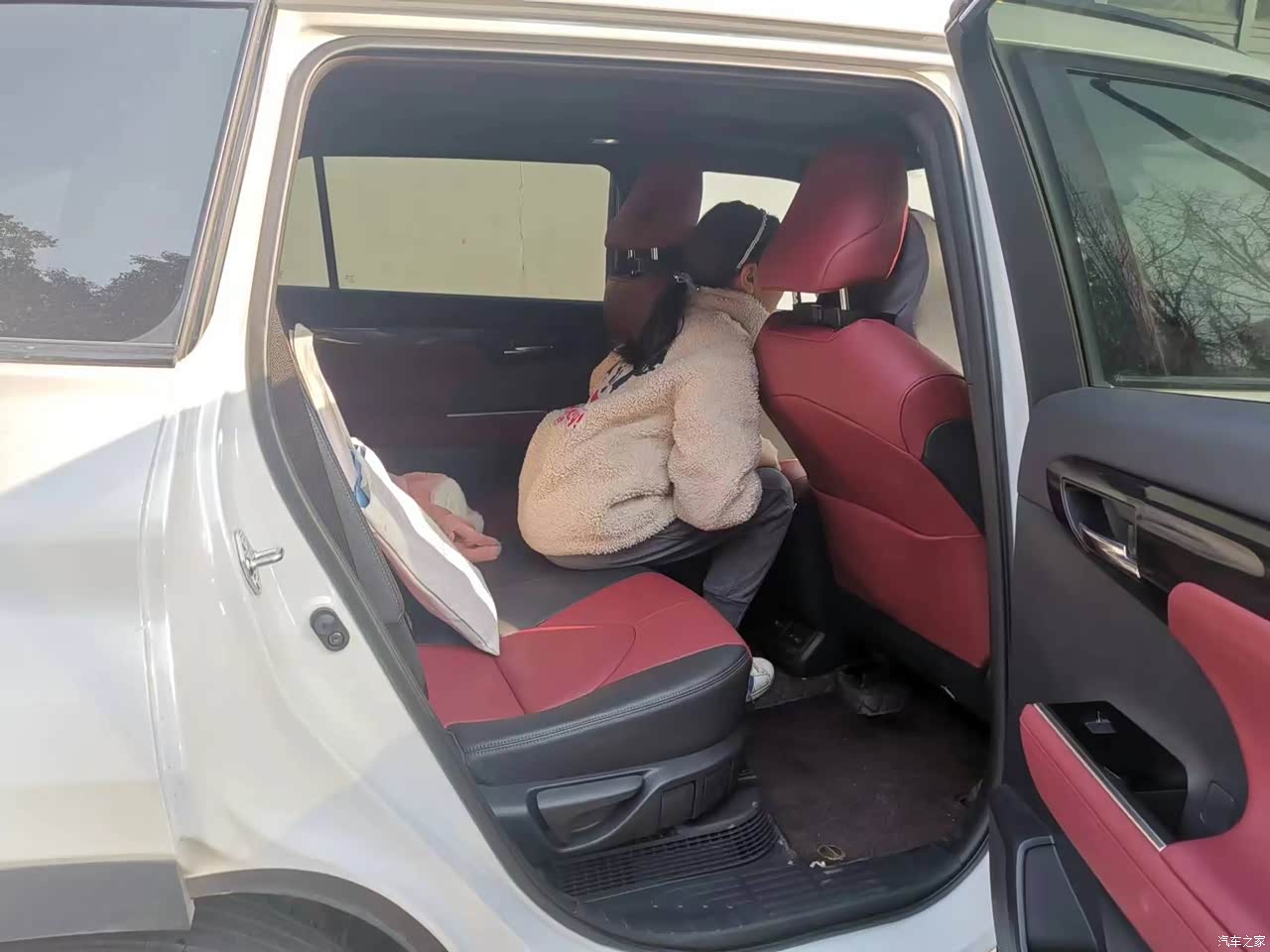 当初选择这款车还有一个主要原因就是内饰颜色。大红拼接一下点亮了车子的亮点。开始我还担心红色过于艳丽,但看到实物红却不土,和白色相撞,时尚潮流,超级爱!