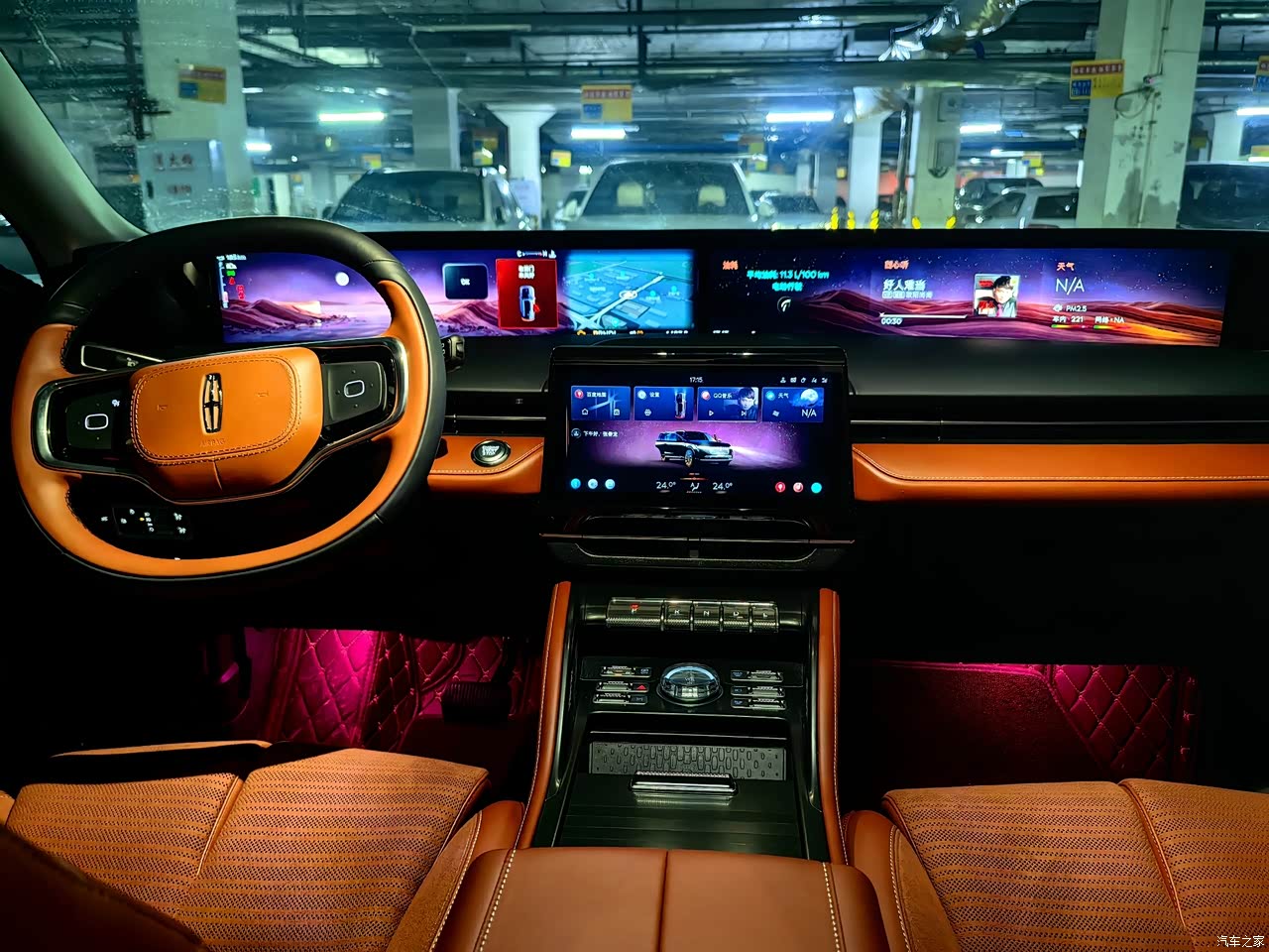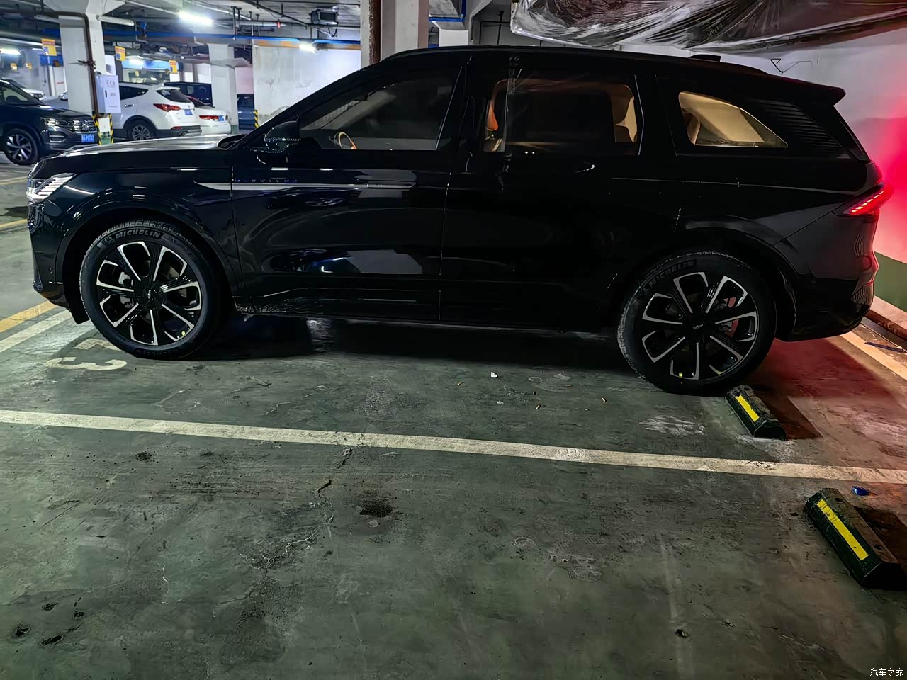 外观方面没的说,高端大气上档次,威武霸气颜值高,长宽高一堆一块在这摆着呢。21寸大轮毂比我旁边车位轿车的前机盖子还高,绝对有面;前后灯光的造型和效果嘎嘎好,灯带就更不用说了,玩这个咱林肯是鼻祖😁。