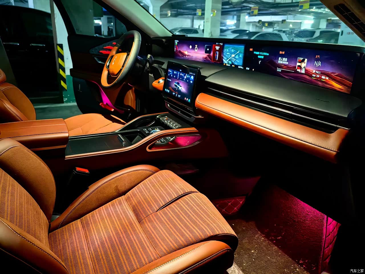 内饰是传统车企中最亮的星,科技配置、舒适配置、做工用料、设计理念,全部给你拉满。 环绕式的大联屏和中控触摸屏,让你有种座在影院里的身临其境感;语音指令逻辑清晰,可实现绝大部分常用功能的轻松控制;内饰颜色为黑棕搭配,设计新颖、做工精良、布局合理,既不失豪华品牌该有的豪华大气之风,又不缺少新时代所赐予我们的科技时尚潮流。 最要赞赏的是它的麂皮座椅,前后排竟然还都有腿托和靠背的电动调节;通风、加热、按摩,前后排都给你安排上,而且按摩的部位和力度都是可以调节的,老爸老妈坐在后排那叫一个乐呵,你就说你还想要啥吧😁。 方向盘加热和空调都可以远程控制,温暖随叫随到,让你的寒冬不再瑟瑟发抖!什么PM2.5过滤,什么多种香味的香氛系统,什么水晶按键和旋钮,什么氛围灯,什么迎宾光毯,只有你想不到,没有它做不到的。 只想大声对你说:还有谁……😊😊😊
